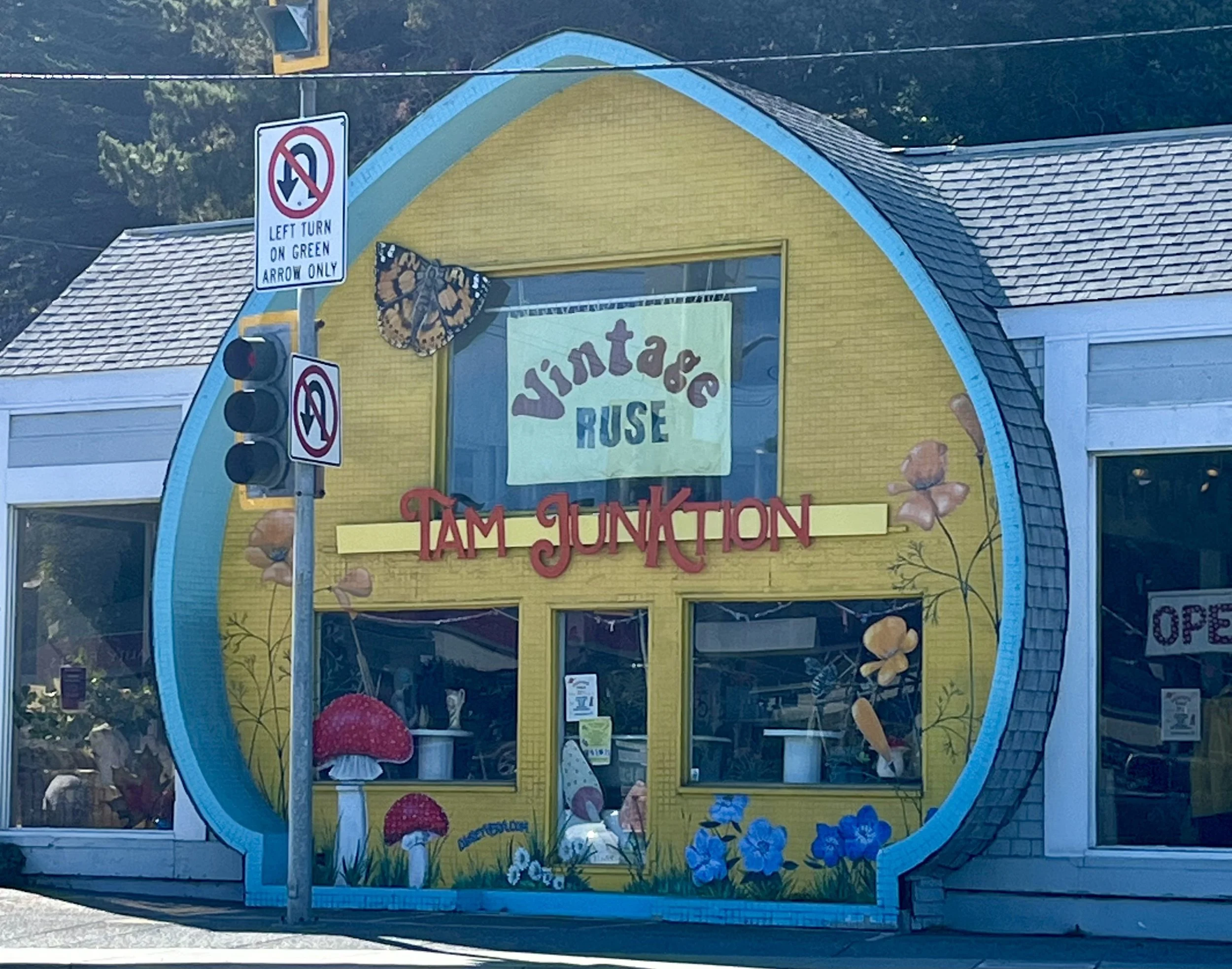 You've probably seen that colorful yellow building at the T in Tam Junction—an electrifying spot that gives tourists flooding Highway 1 serious FOMO. Opened April Fools' Day 2022, Vintage Ruse shares space with the former Boomerang Lounge (reimagined under creator Courtney DiCarlo, the B Lounge is now a "low fuss, high vibe" women's lounge and co-working space by day, community events for all, by night).